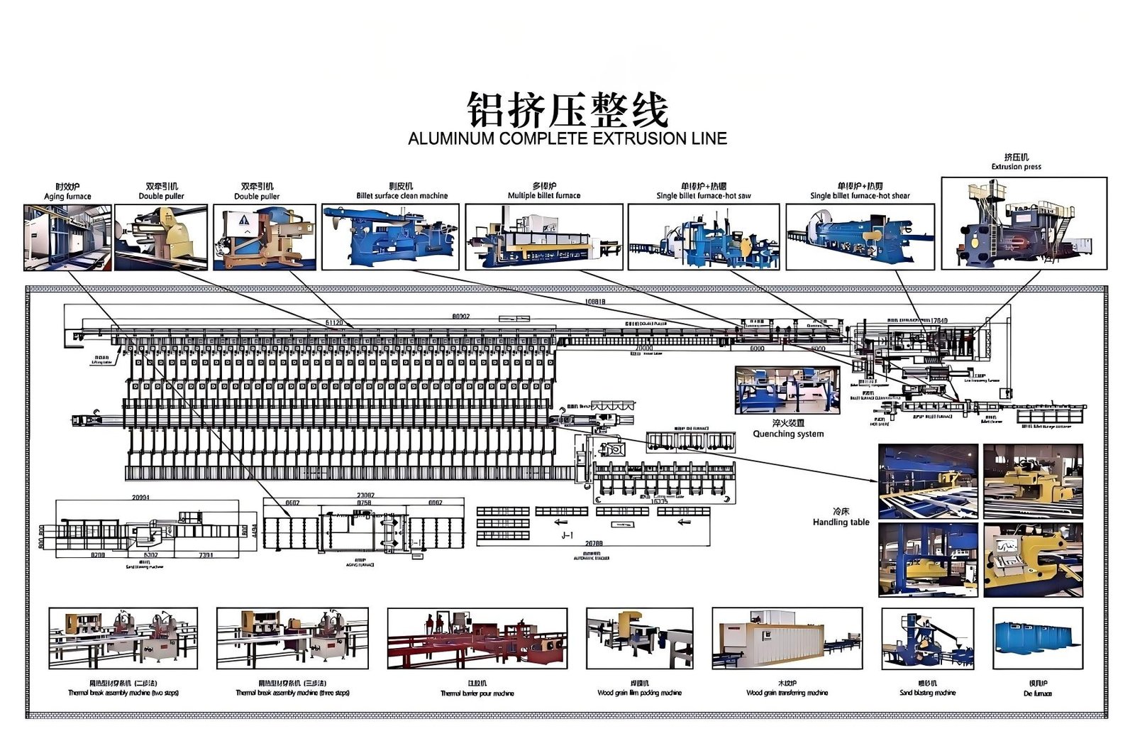 We have more than 20 years machinery experiences in aluminum profiles extrusion plant, from extrusion plant press machine to auxiliary machines, from machine to machine accessories, we are 7/24 on line, 100% focus.